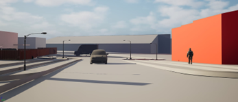 MYND 4: BREYTT GÖTUMYND, FYRIRHUGUÐ BYGGÐ MYNDAR 7,5METRA VEGG ALVEG VIÐ GÖTU